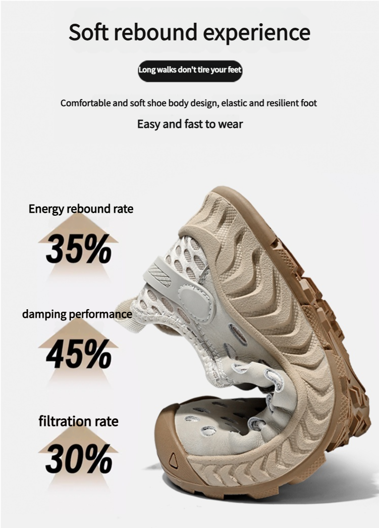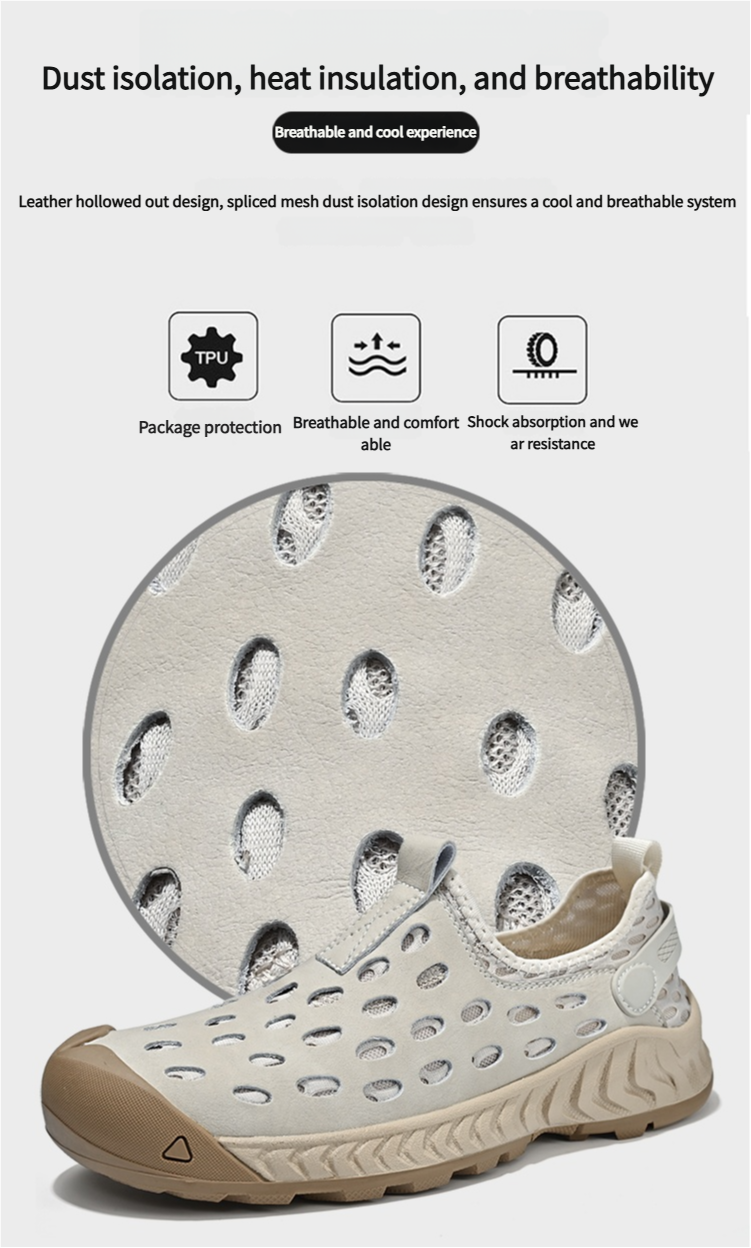 Crafted with a smart combination of top-layer cowhide and durable mesh fabric, these shoes maximize airflow while standing up to rugged terrain. The mesh keeps feet cool and dry, while the cowhide adds structure and wear resistance.