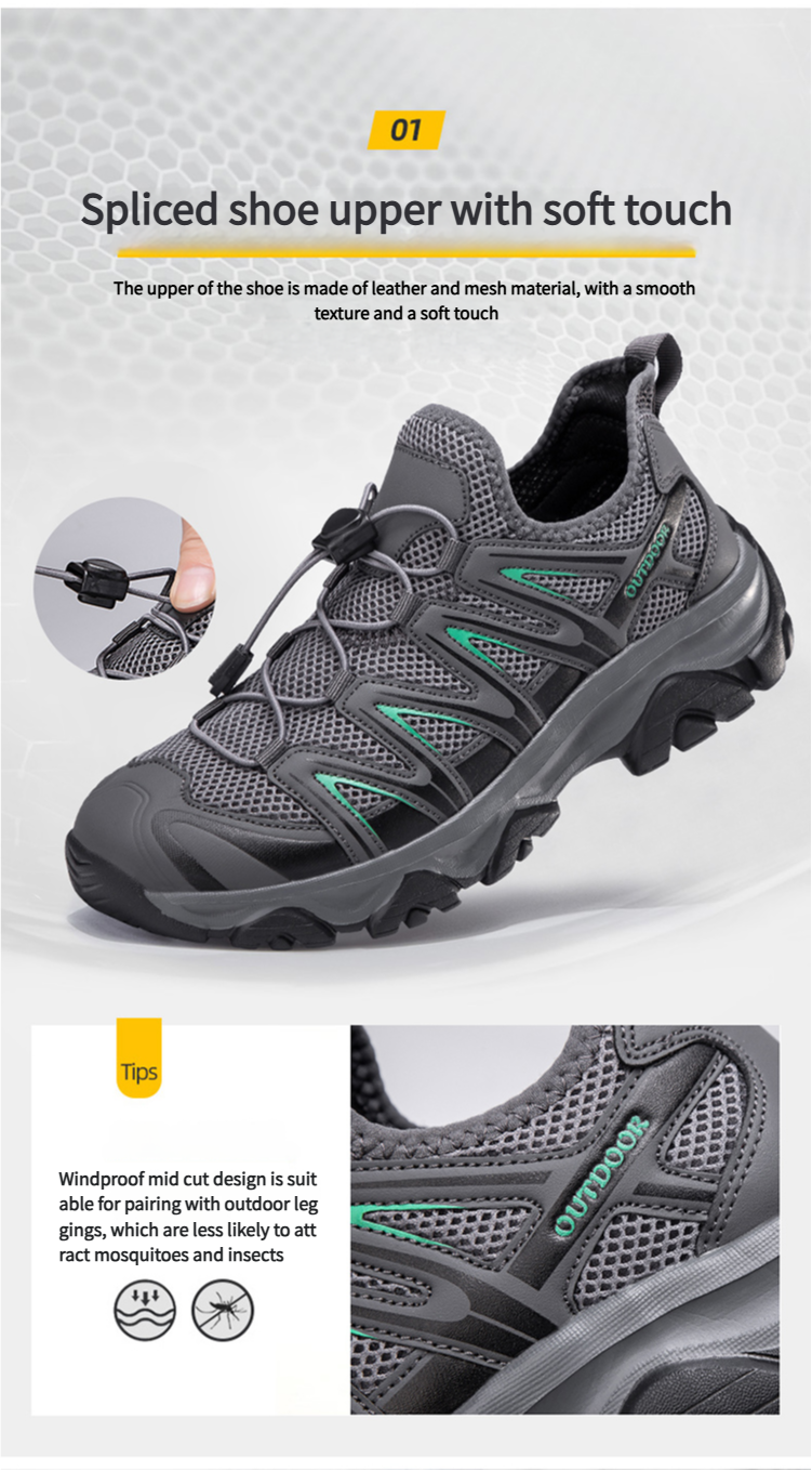 The upper is made of highly breathable mesh material to improve air circulation, so you can still feel fresh after wearing it for a long time, which is suitable for outdoor activities in spring, summer and autumn.