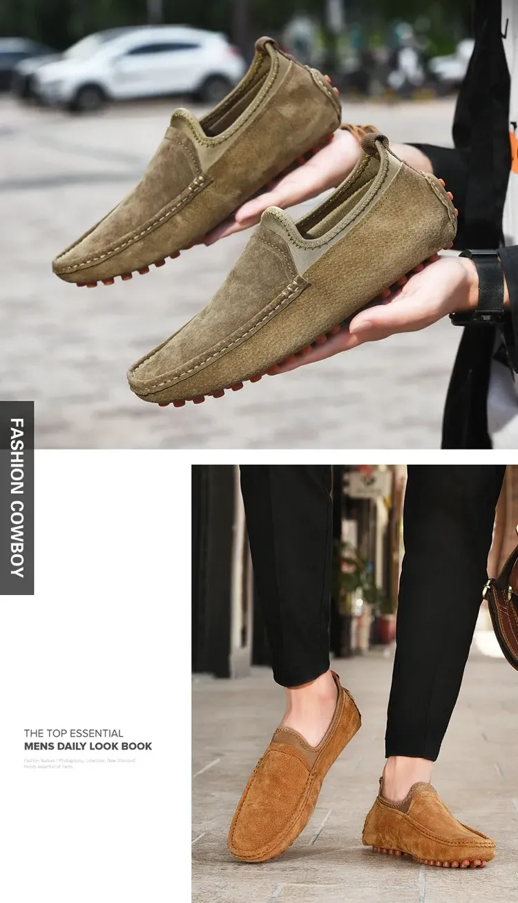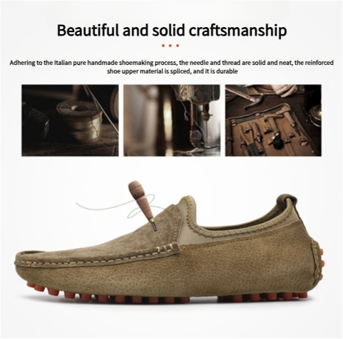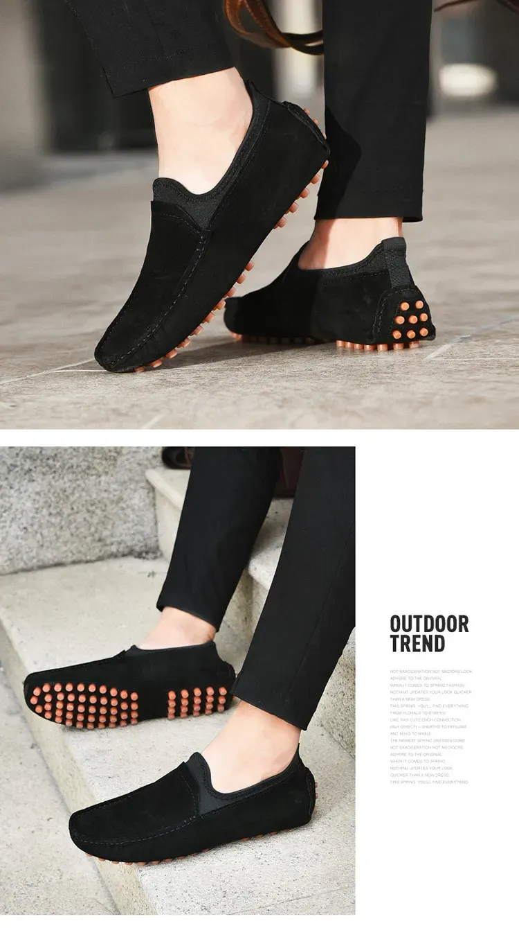 Crafted from high-quality cowhide leather, these moccasins offer a soft, supple feel while ensuring durability and a timeless, sophisticated look. The breathable leather upper keeps your feet cool and comfortable all day long.